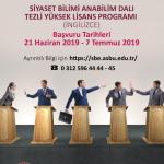 Siyaset Bilimi Anabilim Dalı (İngilizce) Tezli Yüksek Lisans Programımız 2019-2020 Akademik Yılı için başvurulara açılmıştır.